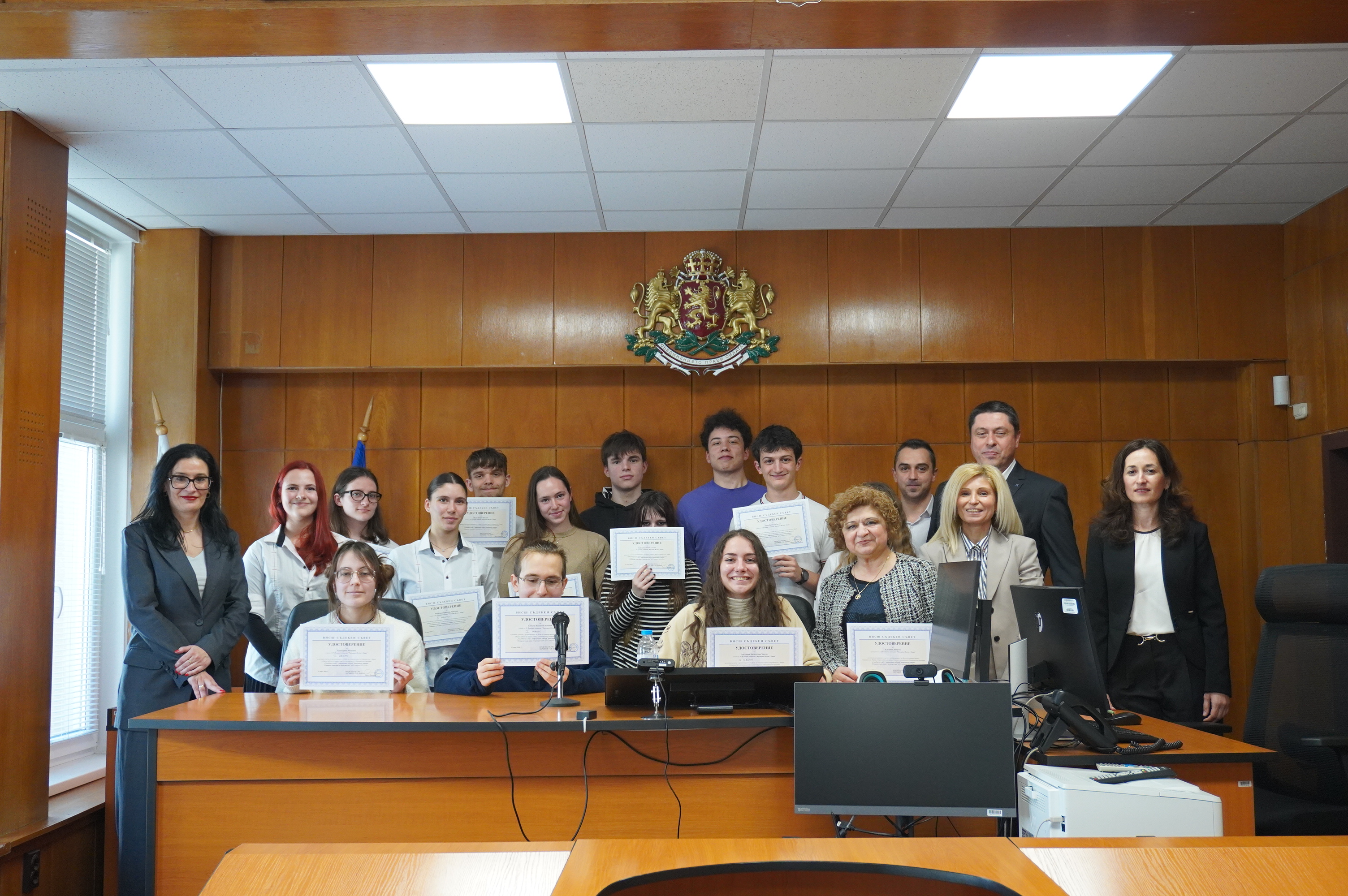 Всички участници получиха грамоти и значки „Везни“ – символ на правосъдието. Председателят на съда Цвета Павлова поднесе емоционална изненада, като прочете откъс от творба* на една от участничките – Мира Папазова от 12 „б“. За своята отдаденост при подготовката на учениците, преподавателят Елизабет Добрева също бе отличена с грамота.